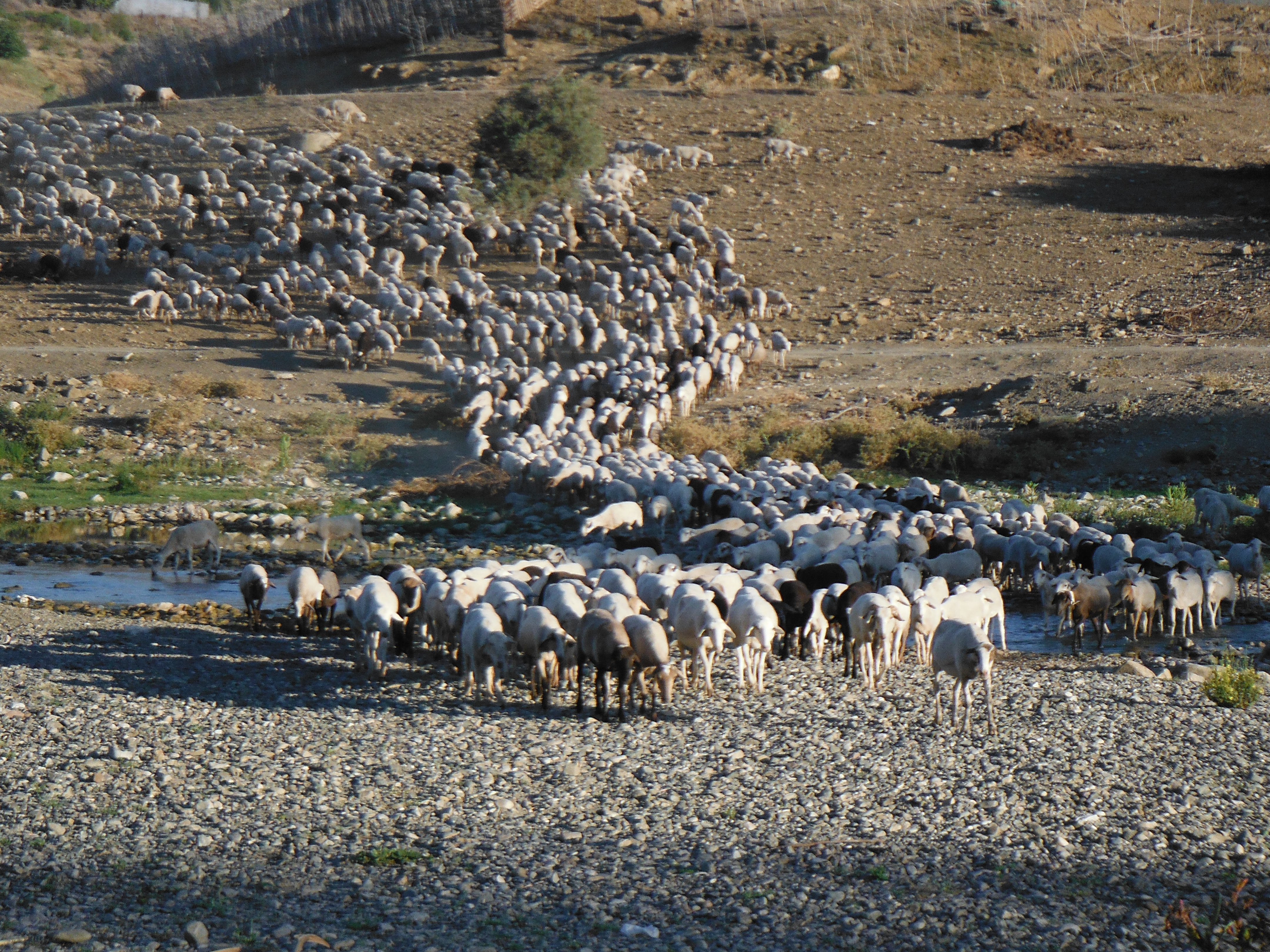 Things were looking a little shaky when we arrived at our chosen spot. A flock of several hundred sheep was being driven across the river just a few metres upstream of the point we were hoping to sneak up on the fish. It was quite a spectacle to see the dogs gather the sheep herd them across the river. Some big white dogs walked right among the flock and, at first glance, looked not unlike sheep themselves!