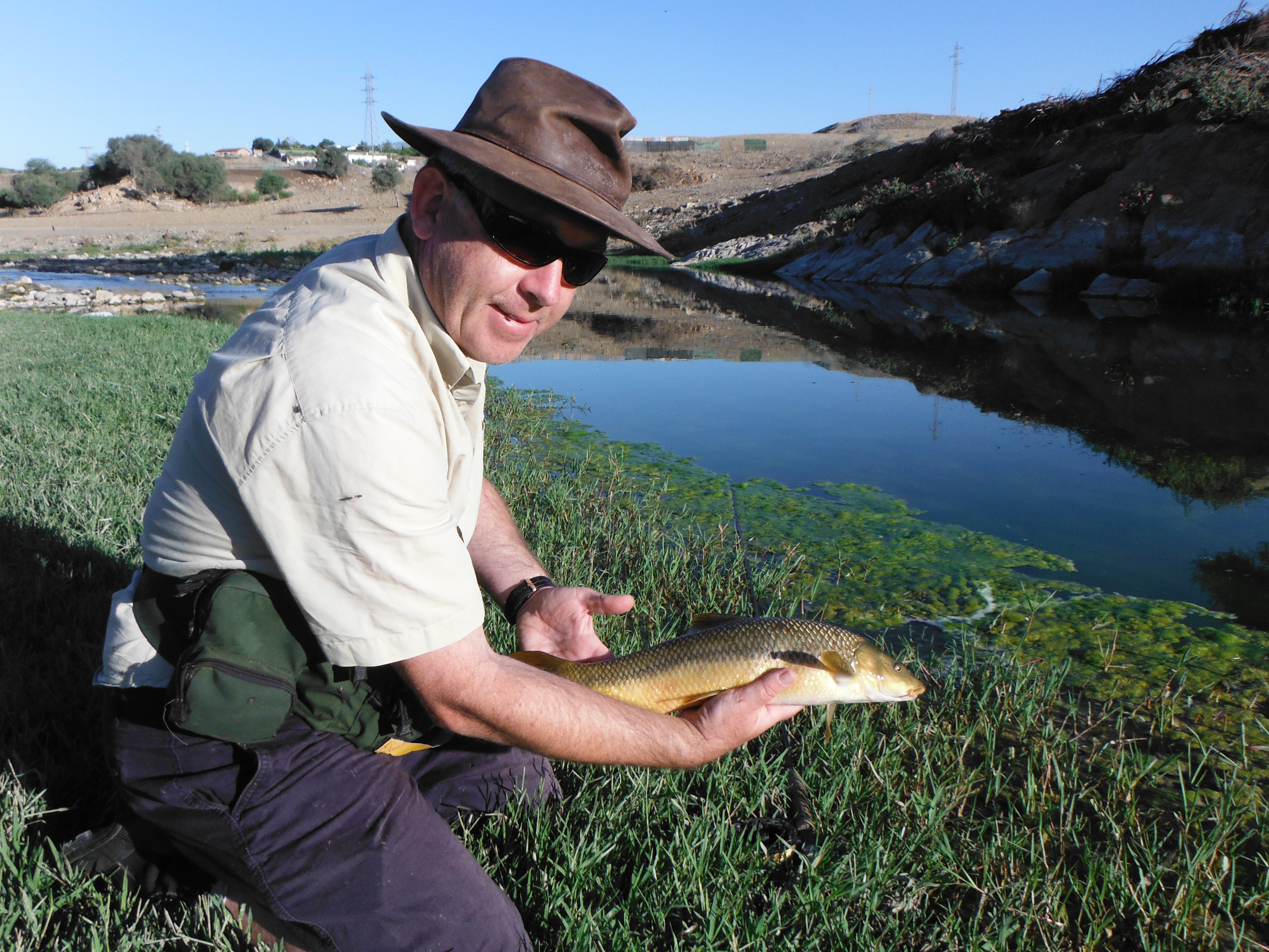 Thankfully the gipsy barbel were undeterred by all this commotion and we were able to sneak up and catch a few of them. The fish here will hold in very shallow water and it is necessary to approach them with considerable stealth and to avoid breaking the skyline. Paul cast to them from a kneeling position. There is quite soft grass here which offers much greater comfort to bare knees than the rocks and thorny scrub which line much of the river. The only down side is that there is a pretty fair chance you will find yourself inadvertently kneeling on goat shit!