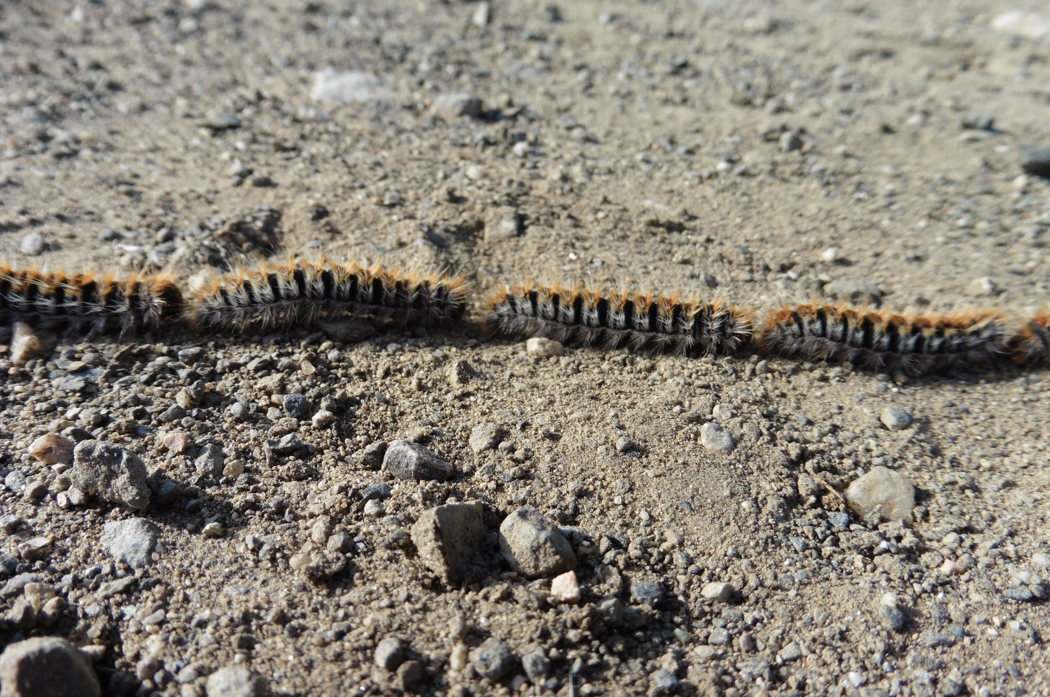 A few days ago I was out walking the dog when we came across a bunch of caterpillars crossing the road. These were processionary caterpillars and are a familiar sight in this part of the world particularly at this time of the year. They walk in a line one after another, a habit that gives them their common name. They produce a trail of pheromones but it is the hairs at the rear of the caterpillar in front provide the main stimulus for the caterpillar following behind. Even though I have seen this behavior many times I had never stopped to consider WHY they should be marching in a procession like this away from the pine trees on which they grow over the winter.
