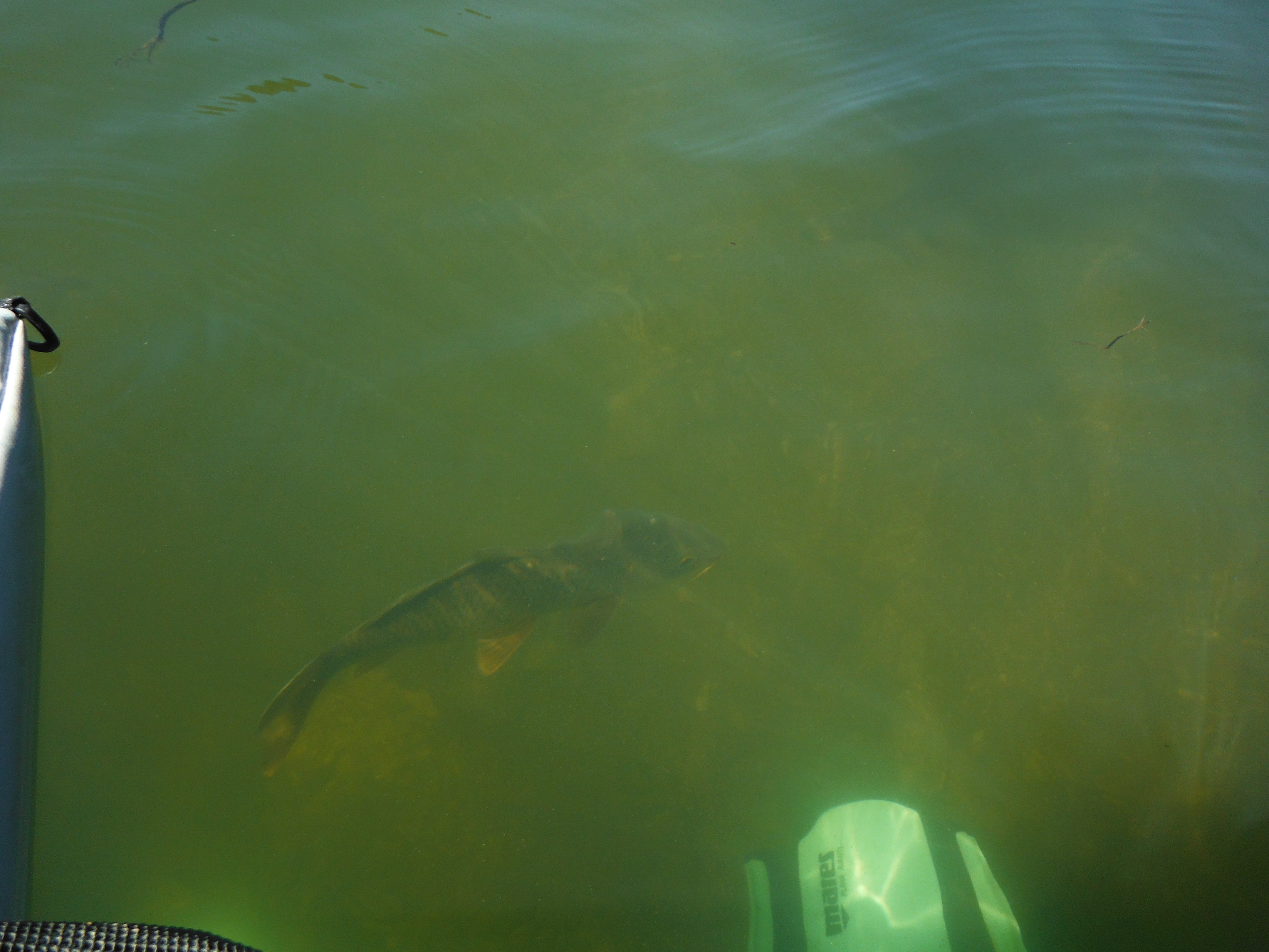Interestingly, while the bass were keeping much to themselves, the carp in the margins were thrashing around mightily. Some were actually in and among the flooded grasses at the very edges. I imagine they are in the prelude to spawning and the males are showing off and courting the females. It is almost impossible to resist the temptation to pop a fly in among them but, not unexpectedly, they showed no interest at all.