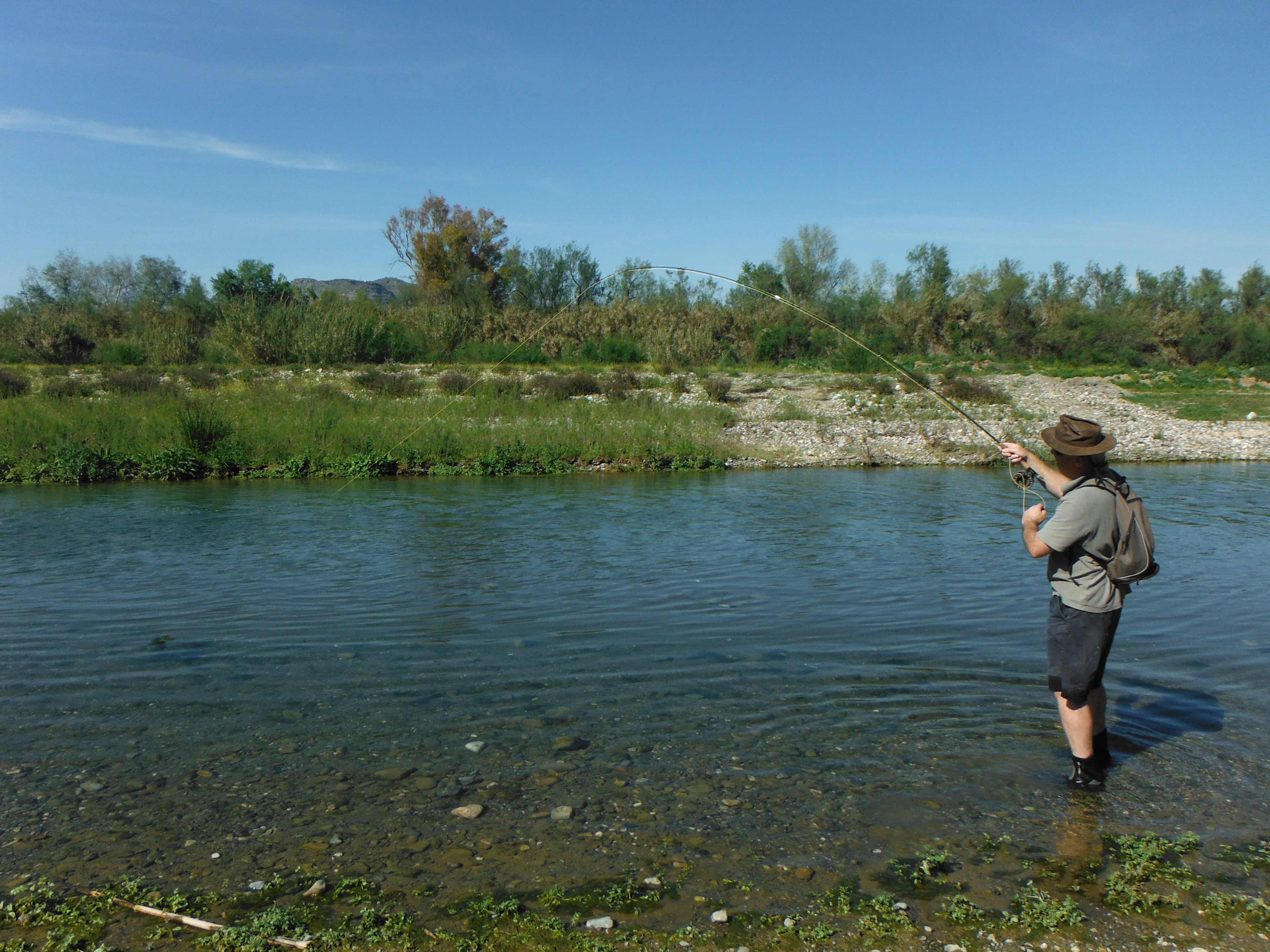 I was in “chore” mode when Leo said he wanted to go fishing. We had about 3 hours before Pippa needed to be dropped at her dancing class in Fuengirola and he figured that that would be time enough. Needless to say, as soon as the river was mentioned all thoughts of chores wet out the window and in short order we were kicking up dust from the dirt track on the way to the Guadalhorce.