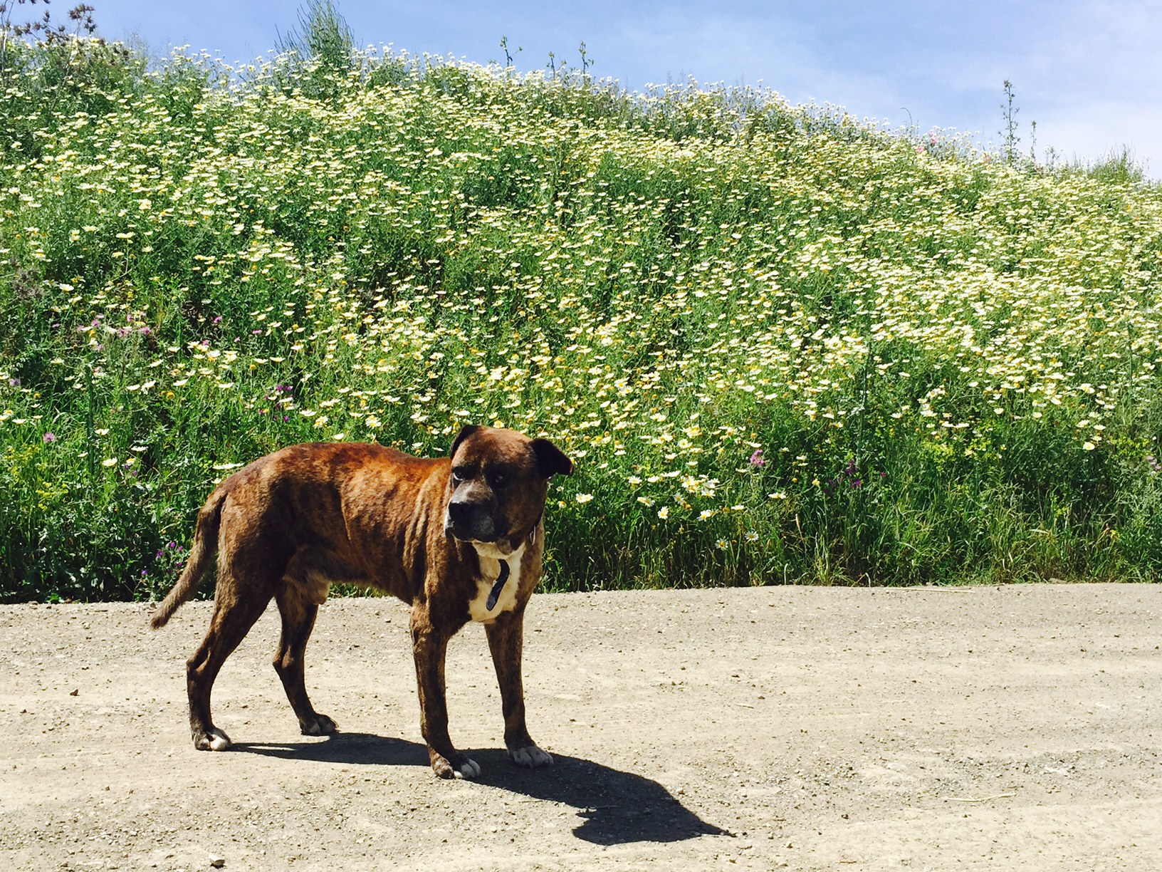The campo is just crazy with flowers at the moment. It is just lovely out there. It seems, in places, as though clouds passed overhead and rained paint – purple clouds, yellow clouds. The verges of the paths are overgrown and heaving with colour. sometimes the dogs, straying off the track would just disappear into the plants as though they had been swallowed by the campo.