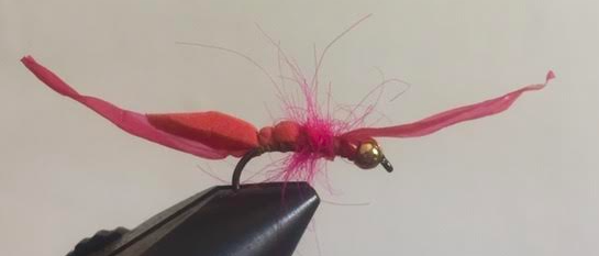 Don´t laugh! This is one of a couple of experimental carp flies I tied up. The tungsten bead makes the fly sit on its arse and the buoyant foam lifts the remaining part so that the fly angles up and will be visible in soft sediment. It is supposed to look like some kind of wormy thing. Unfortunately I have not had a chance to see if carp will consider it anything more than a joke.
