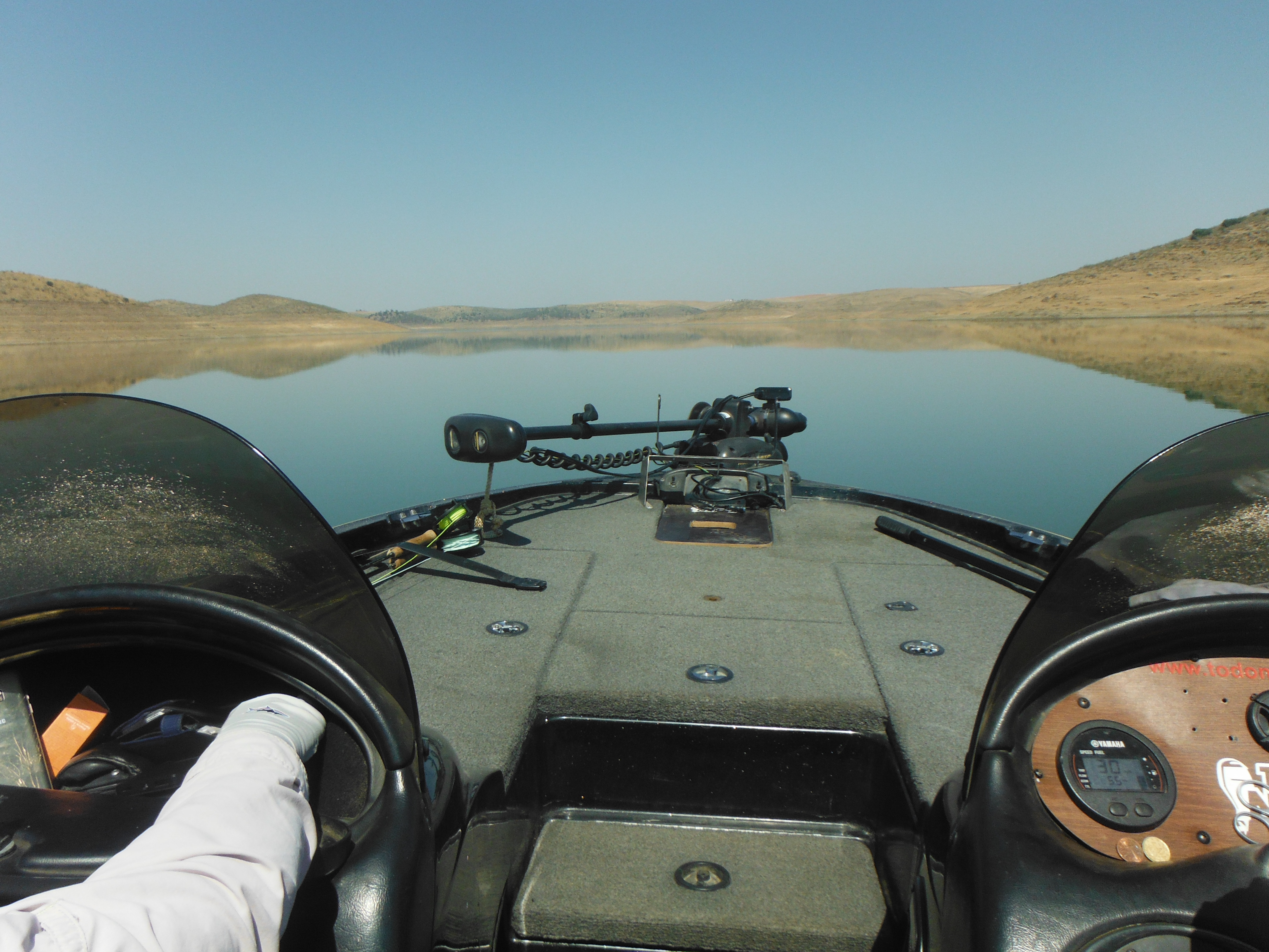 On Wednesday Steve Lawler and I chucked our stuff in the back of the car and headed off to Extremadura to see if we could catch a few fish on La Serena reservoir. We planned to go afloat with a local guide who Steve had fished with in the past and that turned out to be a good call. La Serena is a huge reservoir. By capacity it is the second largest in the Iberian peninsula after Alqueva Reservoir in Portugal, but if you measure by the length of the shoreline, it takes top spot. It is hard to imagine the scale of this thing. From the dam wall you can travel 70 kilometres to the other end.