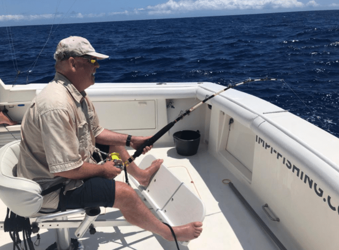 The fish remained deep and, from my position in the chair, the yellow line vanished beyond the end of my rod and pointed down to the floor of the ocean. And then the fish and I settled into a protracted tug of war. The fish was bigger than me and when it wanted line it took it. And then, if I was lucky, I might steal a little back. The fish took more away. I took a little back.