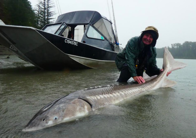 He tells me that the rain never stopped and it bucketed down all day long. His guide had indicated before the trip that catching that pink salmon would be a formality and that he might like then to consider then doing a bit of fishing for one of the monstrous white sturgeon of the Fraser River.