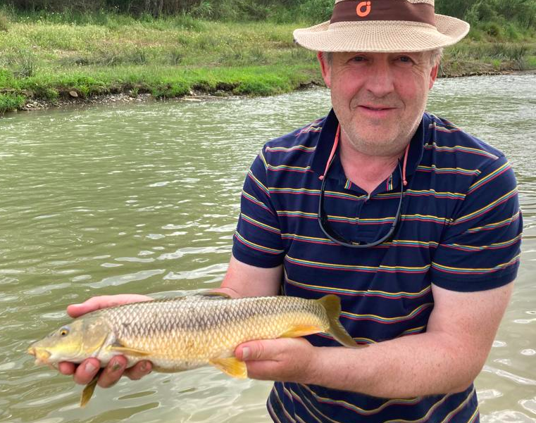 It is always interesting to see the different approaches taken by fly fishermen. When there were no fish in view, which was nearly all of the time, Sean did a fair bit of prospecting of likely water with his fly fished down and across and he had a few takes from fish he did not know were there until he had them on the end of his line. To me that was interesting. We all ended up using versions of the mop fly that carp and barbel seemed to like when it first appeared on the menu. During its three days of sea trials we figured that it performed pretty well. It seems like a good option for the river in its current mood but something a little more modest is likely to be better soon when the water clears a little and the flows ease up.