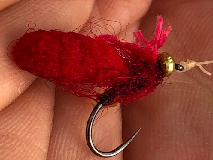 After a few casts that gave me half chances with fish I pitched a fly close enough to a fish on the opposite bank for it to show some interest. The fly sank from view but so too did the fish. I thought that the fish was interested since the direction of its movement suggested that it was closing the gap between it and the sinking fly. I gave it a second or so before lifting and then everything tightened up.