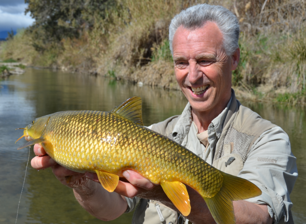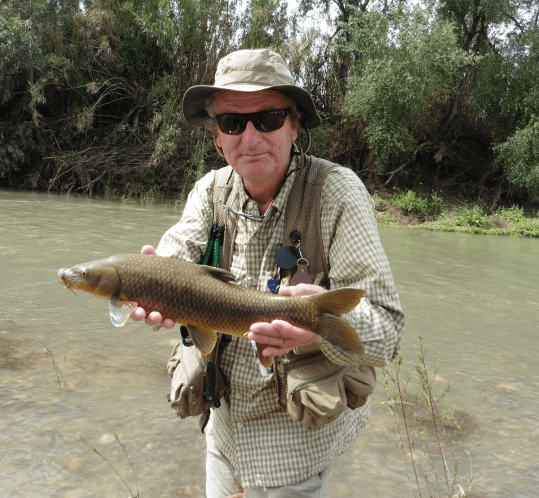 The man who wrote the book about Spanish barbel (quite literally) is John Langridge. He is an expert on these fish and has caught all of the species we have here. I had the good fortune of fishing with John on my own local river where we caught gypsy barbel Luciobarbus sclateri on the fly. John has authored several books on fish and fishing and has featured in several TV programs and we ended up, the two of us, being filmed on the Río Guadalhorce and the Río Grande targeting gypsy barbel.